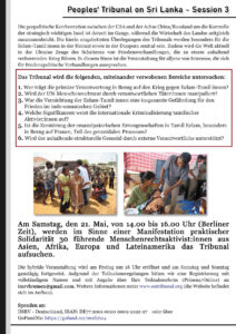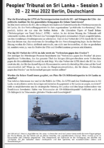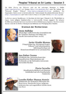 Peoples’ Tribunal on Sri Lanka – Session III 20 – 22 Mai 2022 in Berlin